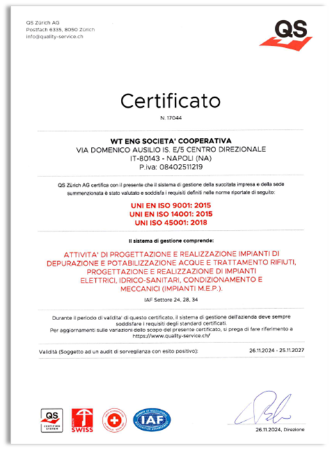 •UNI EN ISO 9001: 2015